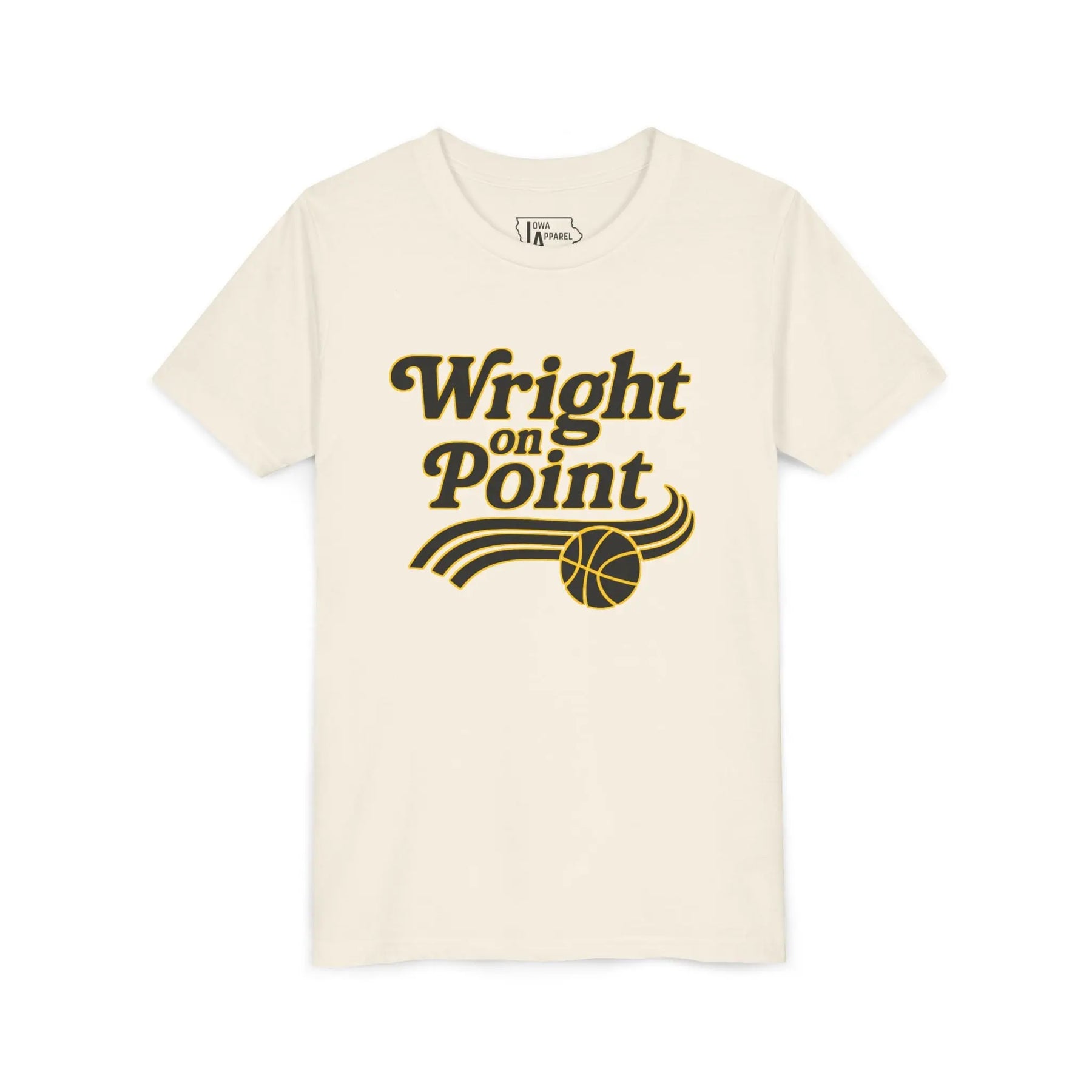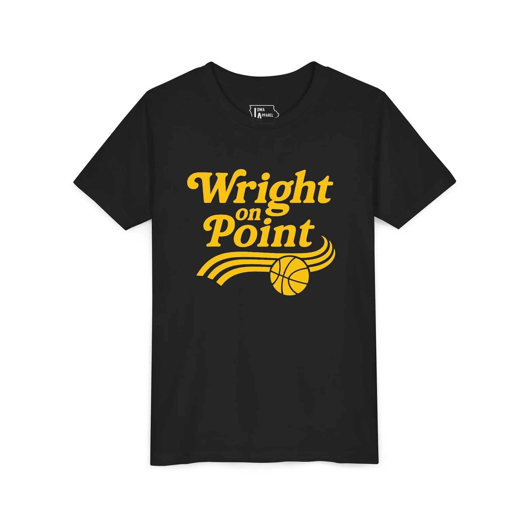 This exclusive tee celebrates Iowa guard Chazadi “Chit-Chat” Wright, known for her leadership, hustle, and undeniable energy on the court. The front features her signature phrase “The Wright Way” in bold Hawkeye gold with a basketball accent, while the back showcases “CHIT-CHAT 11” — her number and nickname fans know and love.